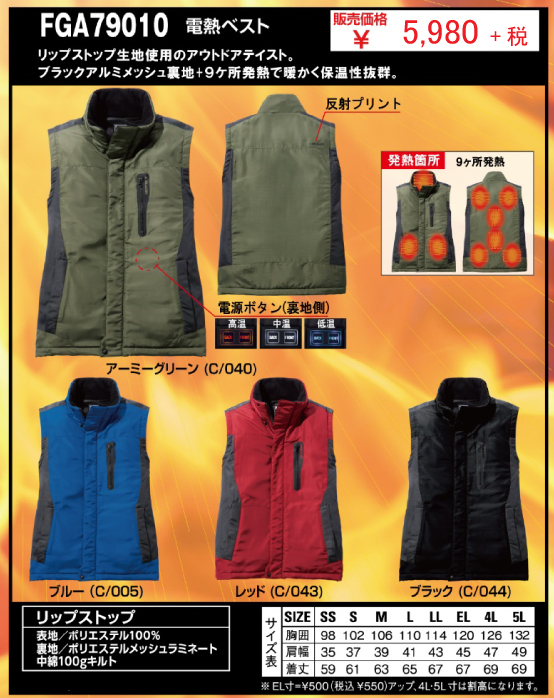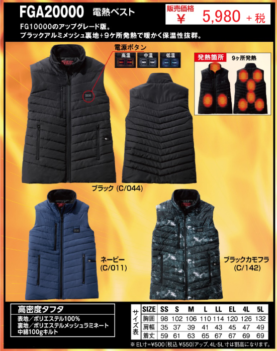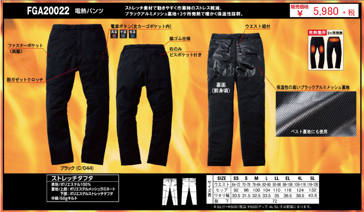 - ブラックアルミメッシュ裏地+9ヶ所発熱で暖かく保温性抜群!